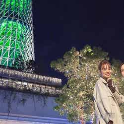 東京スカイツリークリスマス限定ライティング「シャンパンツリー」、(左から)赤埴奈津子さん、江本るり恵さん(C)モデルプレス