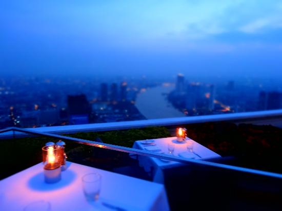 バンヤンツリーの61階の屋上にあるレストラン&バー。おすすめは、日没30分前から行って刻々と変わる空の色を楽しみながら過ごすこと。360度見渡せる景色は...