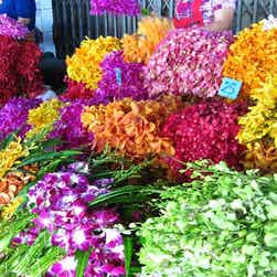 タイ最大のフラワーマケットで、路上に生花を売る屋台がたくさん並んでいます。24時間営業していて夜中から早朝にかけてが最も賑わう時間帯です。バラの花...