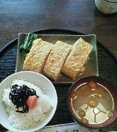 卵焼きだけ?となると少し寂しい感じもしますが、ご飯味噌汁の付いた定食風なものもあります。卵焼きのふわふわ感、しっとり感がたまりません!!