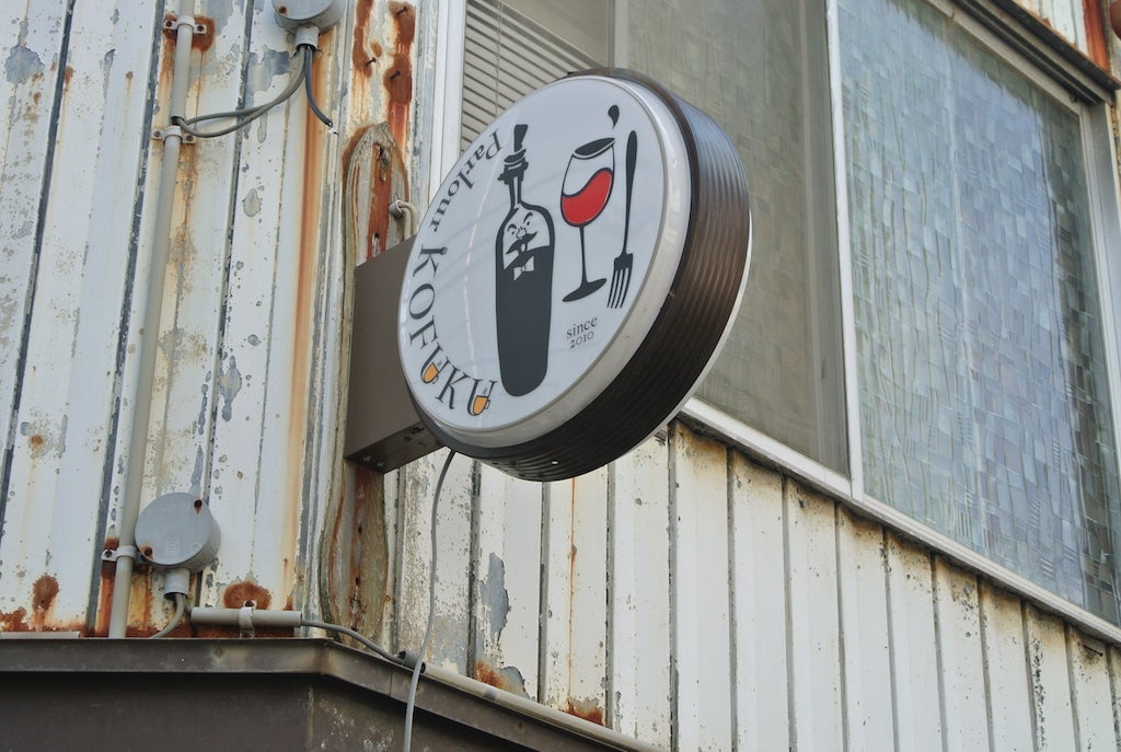 外にあるオヤジ顔の看板が目印の、テーブル席8席、カウンター席5席の小さなお店。グラスワインかビール1杯とおまかせおつまみ3種で1000円のセットはとてもお得。他、デザートとコーヒーが付くセット(700円)も。