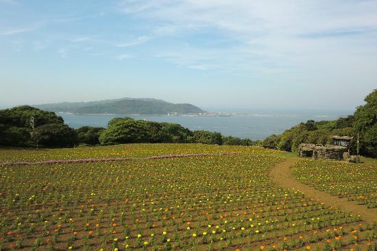 春には桜や菜の花、つつじ。夏にはあじさい、ひまわり。秋にはサルビア、コスモス。冬には日本スイセン、つばきなど、一年通して花を楽しむことができます。海も見え、花の香りのなか自然を感じてください。
