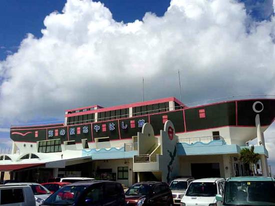 与勝(よかつ)半島と平安座島(へんざじま)を結ぶ海中道路の中央部にある大きなマーラン船の形をした建物が印象的な道の駅。ドライブの途中に寄って、ぜひともうるま市の特産品をお土産に買いたい。館内ではお土産だげでなく、バイキングレストランや鮮魚コーナーもあり地元民にも大変人気。