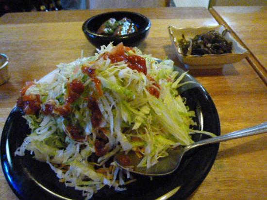 パパイヤの意味をもつ「まんじゅまい」では、沖縄野菜や豆腐がたっぷり入った家庭沖縄料理が食べられる。連日地元客と観光客で賑わう人気店。金、土曜の夜は島唄ライブのゆったりとしたメロディーの中おいしいご飯が食べられます。