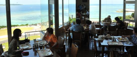 海から近く、高い場所からの眺望が最高な美ら海水族館内の「レストランイノー」。店名の意味は「サンゴ礁に囲まれた浅いおだやかな海」、水族館の中を楽しむ前でも後でもほっとできる場所です。沖縄料理を自分のペースで好きなだけ楽しめるバイキングなのもGood。