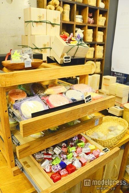 細長い店内は壁一面に手作り石けんがディスプレイされ、その種類はなんと全80種類にも及びます。ひとつひとつ素材や香りが違うので、使い心地も異なり自分の肌質にあった石けんを選べるのが魅力です。日本語堪能なスタッフが自分のタイプにあう石けんを選んでくれます。