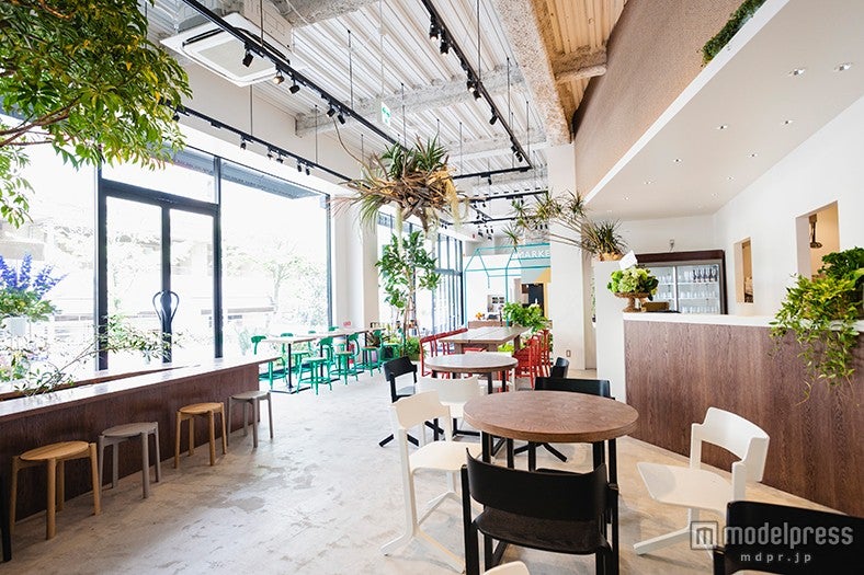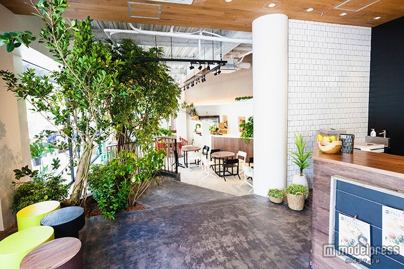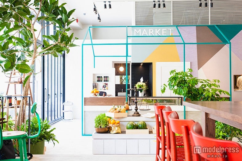 また、店のメニューに使われている野菜やくだものが並ぶマーケットスペースも設けられている。。(女子旅プレス/modelpress編集部)