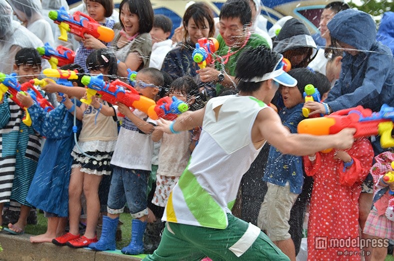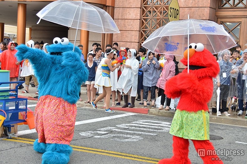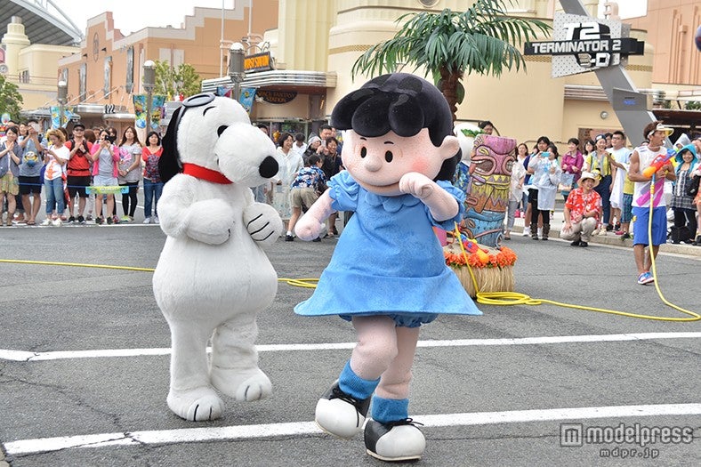 ゲストはエルモやスヌーピーをはじめとしたパークの仲間たちや、エンターテイナーとの水の掛け合いで全身びしょ濡れになり、夏ならではの“熱狂ピーク”を体験した。