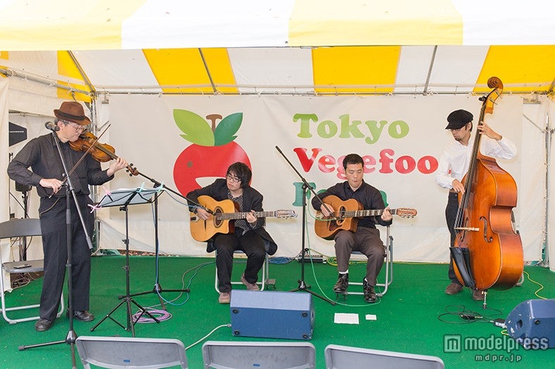 会場で提供される料理はすべてビーガンフードのみ。ビーガンフードとは「動物性食品である肉・魚・卵・乳製品・蜂蜜を使わない食品」のことで、国内外において文化上・健康上などの理由により、食事制限がある人を含め、より多くの人に楽しんでもらえるように配慮している。