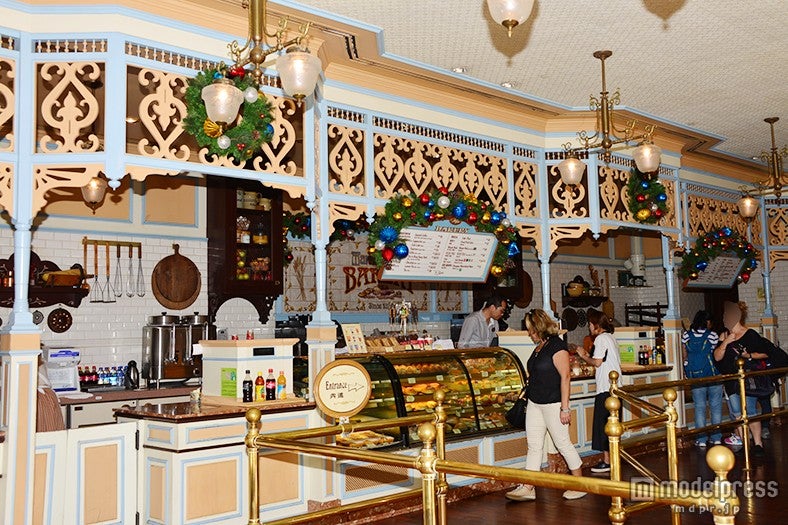 またメインストリートUSAの「マーケットハウス・ベーカリー」の、ショーケースの中には自家製のペストリー、パイ、サンドイッチ、ピザ、キャラクターモチーフのデザートなどがずらり。コーヒーと一緒にホッと一息つくティータイムにぴったりです。