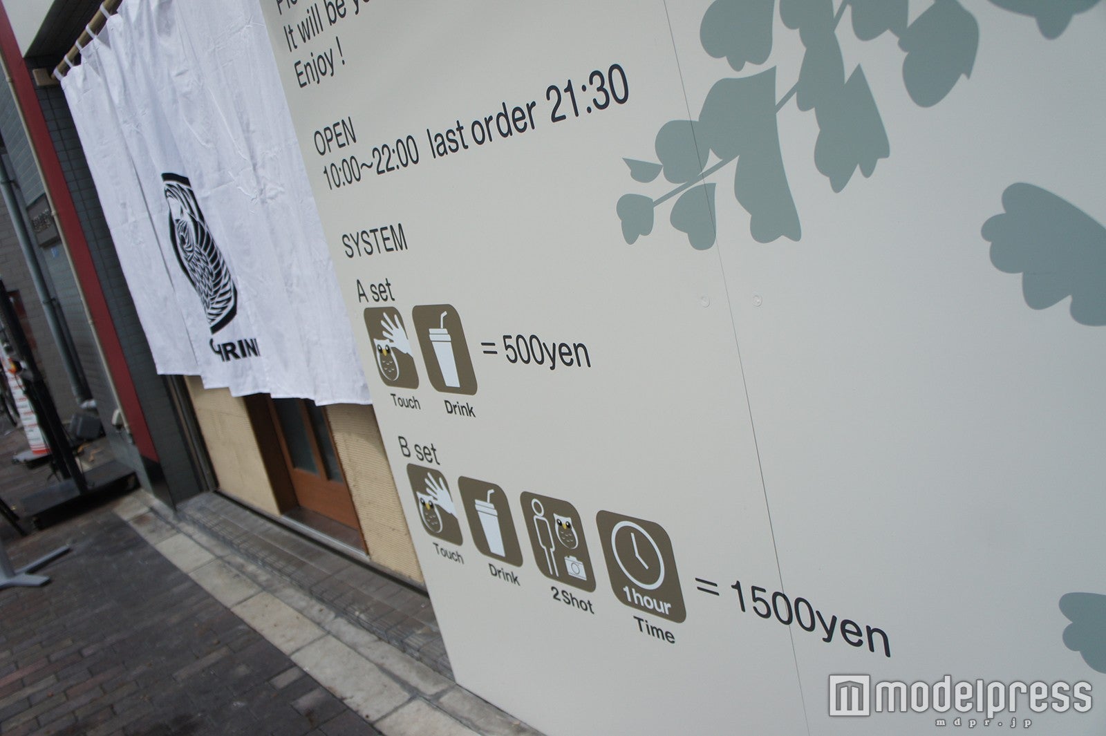 同店は浅草寺や浅草神社からは徒歩2~3分、駅からは徒歩10分の場所に位置し、1Fの路面店舗と4Fに空中階の店舗を構える。1Fではドリンクのテイクアウト型の店舗の通路にふくろうが数羽待機。日本では珍しい白いメンフクロウが居たり、ひざの上で寝てくれる位に触れ合う事も可能だ。