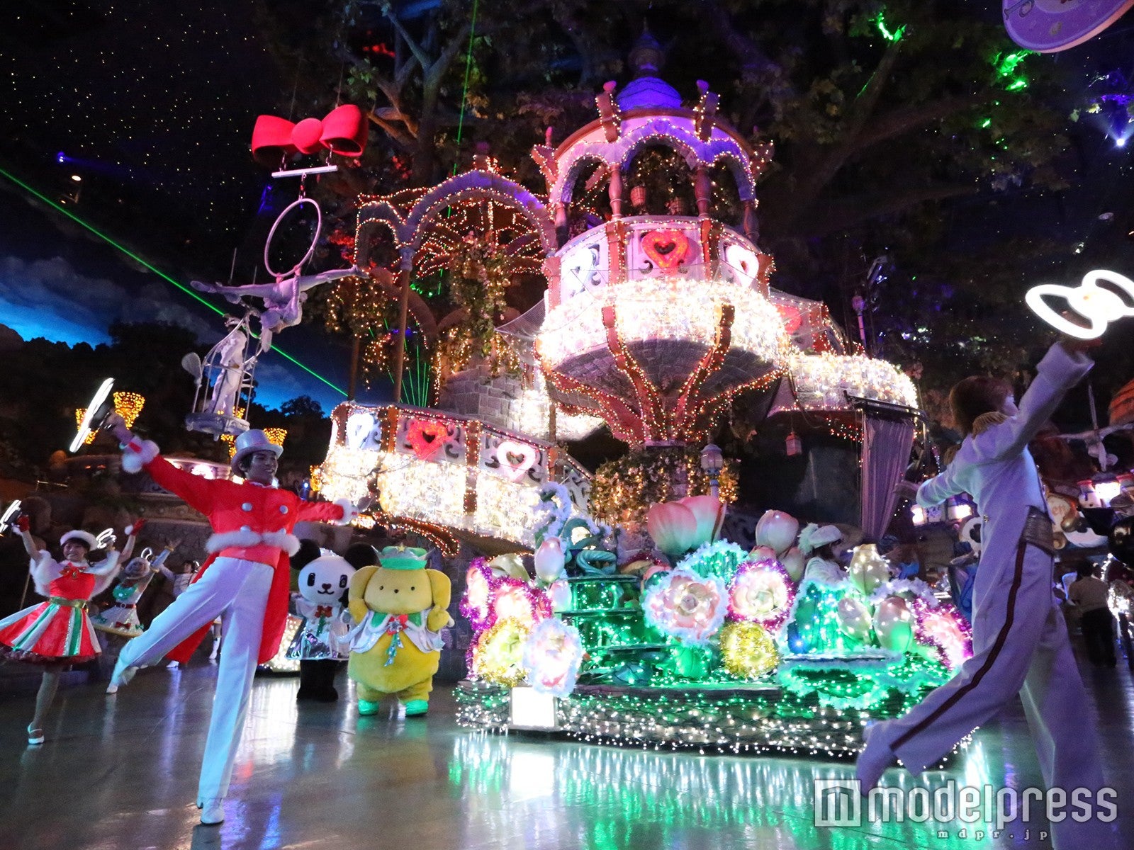 ピューロランド、雪舞うショー&イルミ輝く冬到来 ポムポムプリンの豪華装飾が歓迎