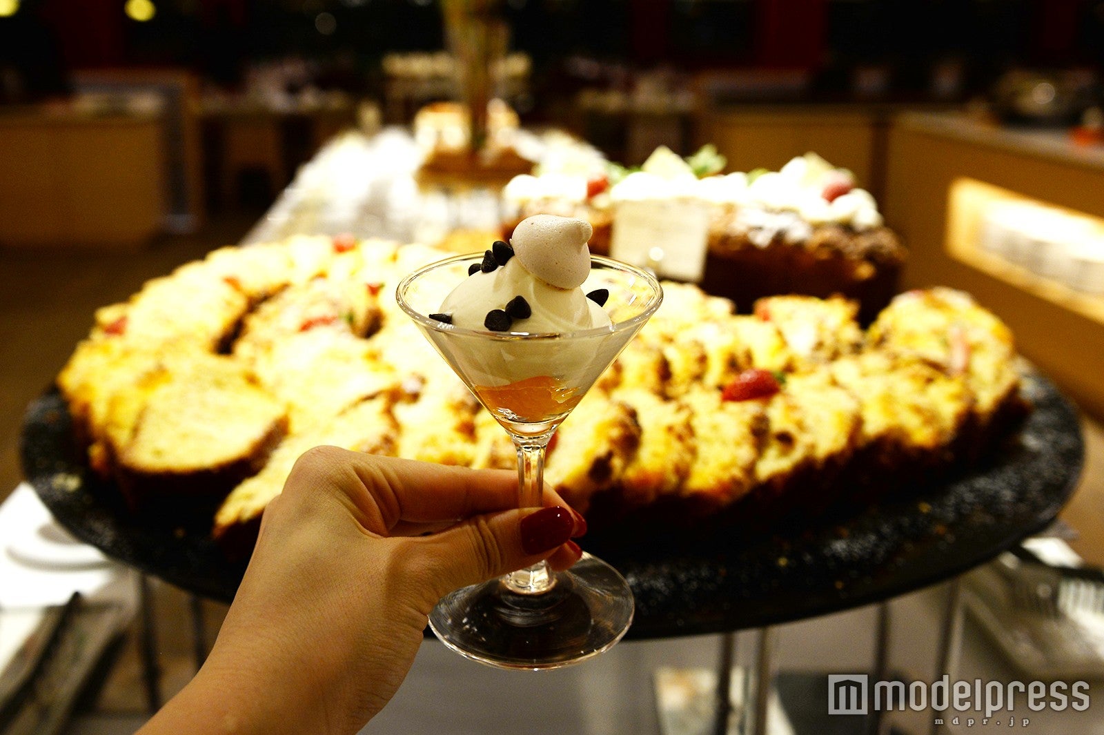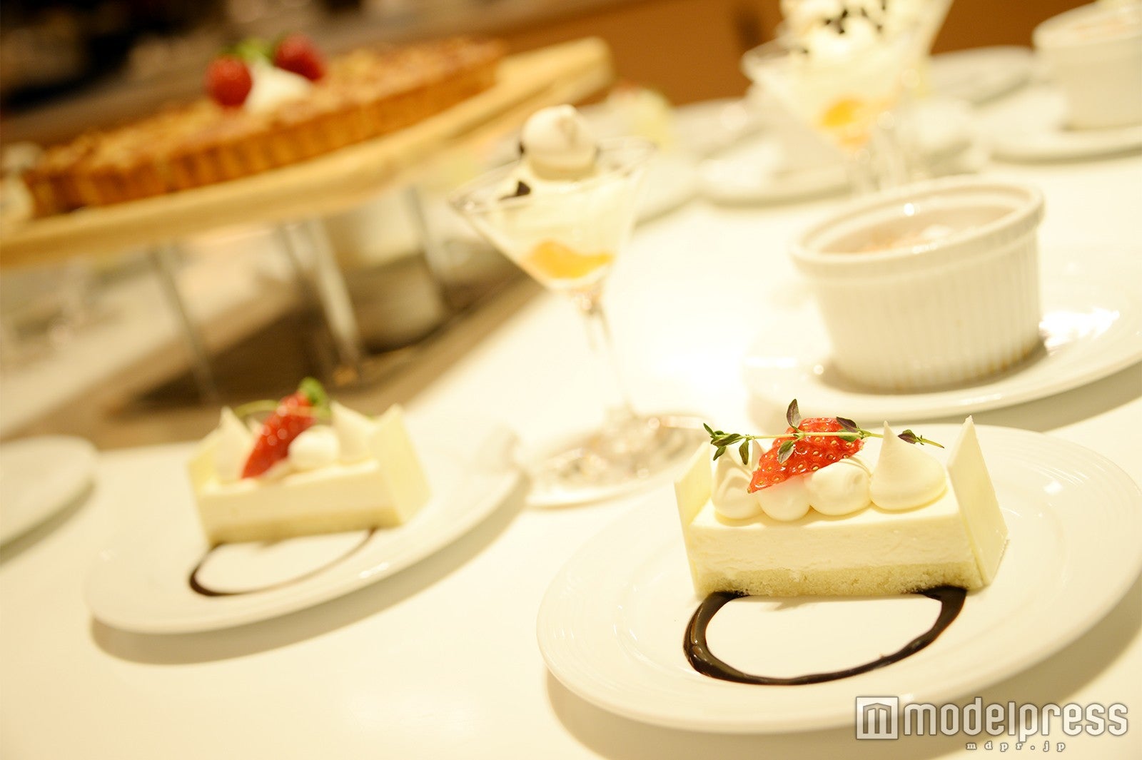 ビュッフェと言えど、食後のデザートもまるでスイーツ専門店のようにハイレベル。ホールタルトや、カクテルグラスのムース、ショートケーキ、桃とベリーのコブラーと、うっとりするような美しい盛り付けのスイーツだらけの幸せ空間に思わずため息が出そう。
