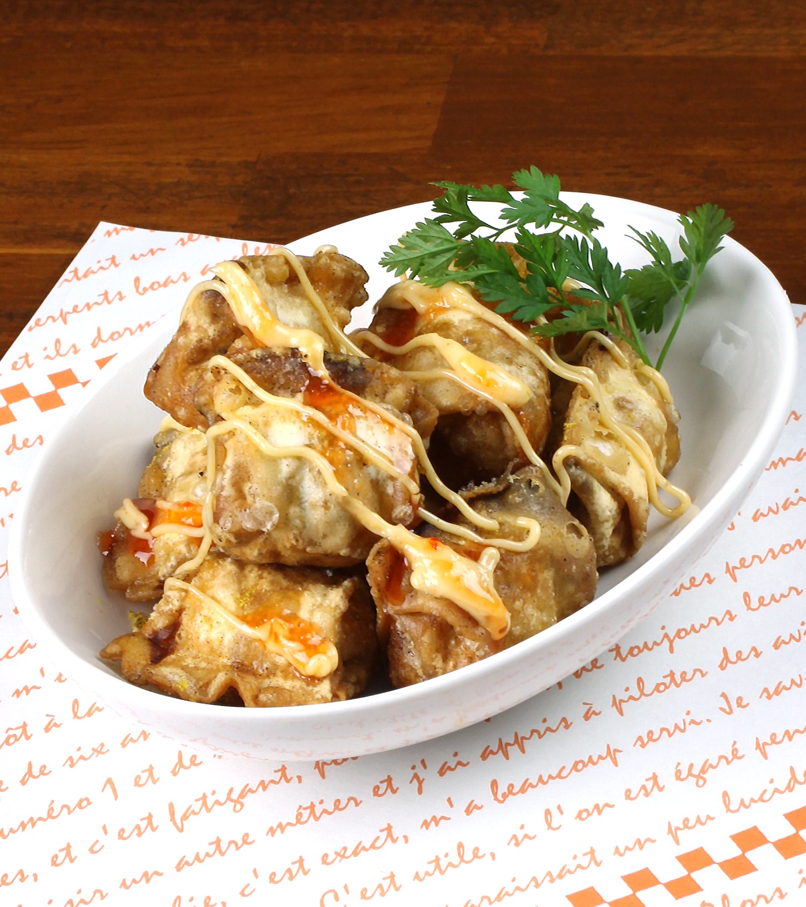 一口餃子酒場 Beer Loves Gyoza(BLG):BLGサクサク揚餃子~特製チリマヨソースがけ~、BLGフリフリ揚餃子~チーズカレー味~