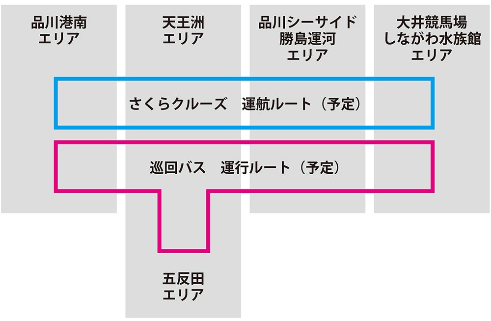 今年初の試みとして4月8日(土)、9日(日)の2日間、天王洲運河、品川港南エリア、大崎、品川シーサイド、大井埠頭周辺などのエリアで開催される17のイベントや観光スポット同時期に開催。特別運行されるクルーズ船や巡回バスが結び、エリア一帯を周遊して楽しむことができる。