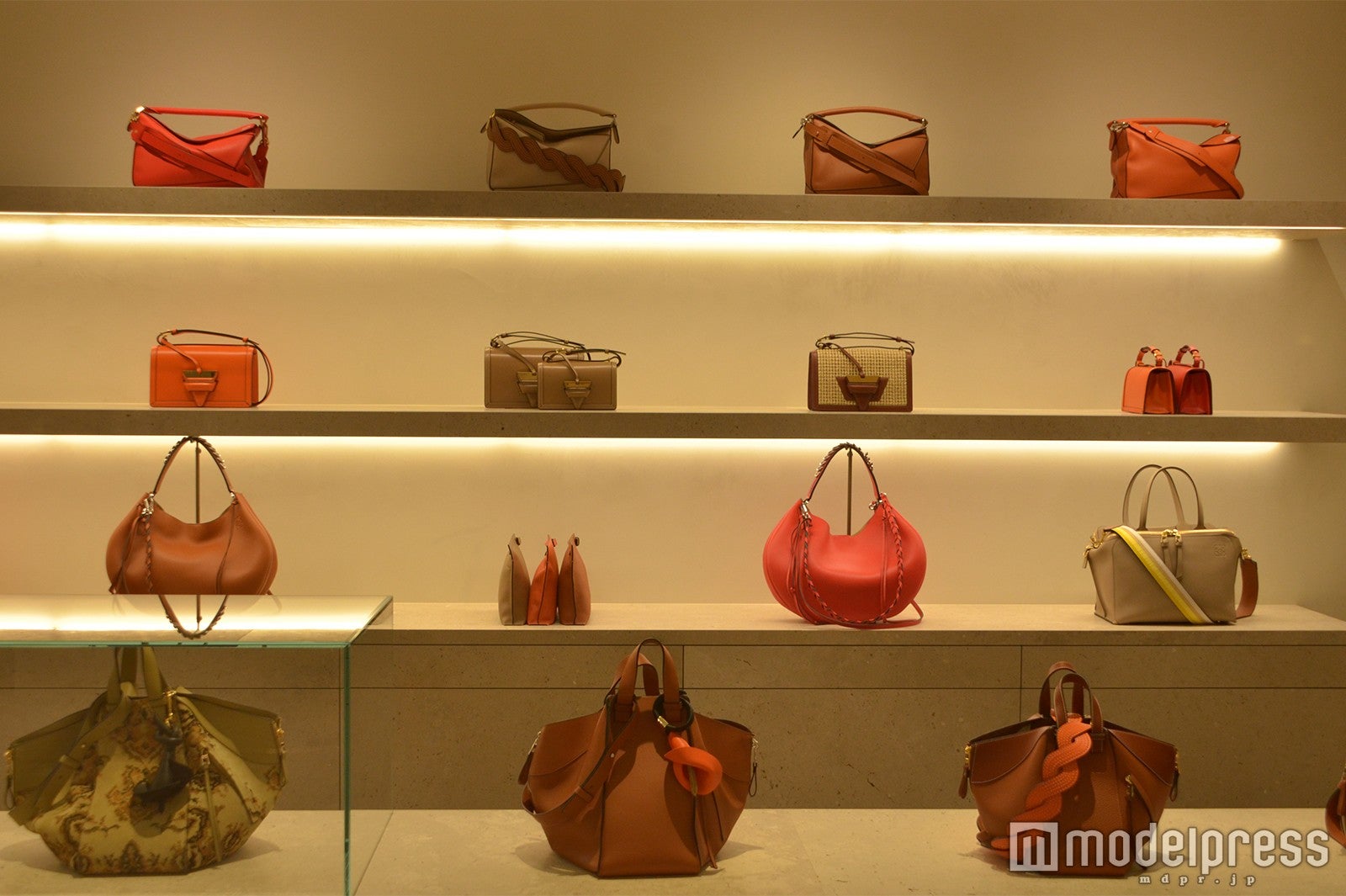 特にファッショニスタから注目を浴びていたのが、革手袋のようなバックルが付いたクラッチバッグ。持ち手があることで従来のクラッチバッグより持ち歩きしやすく、他にはないデザインもお洒落で、まさに独自性と機能性を兼ね備えた逸品。持ち手がメタリックなゴールドの金具になったものや、今期流行のアビスカラーの革製品も豊富にラインナップしている。