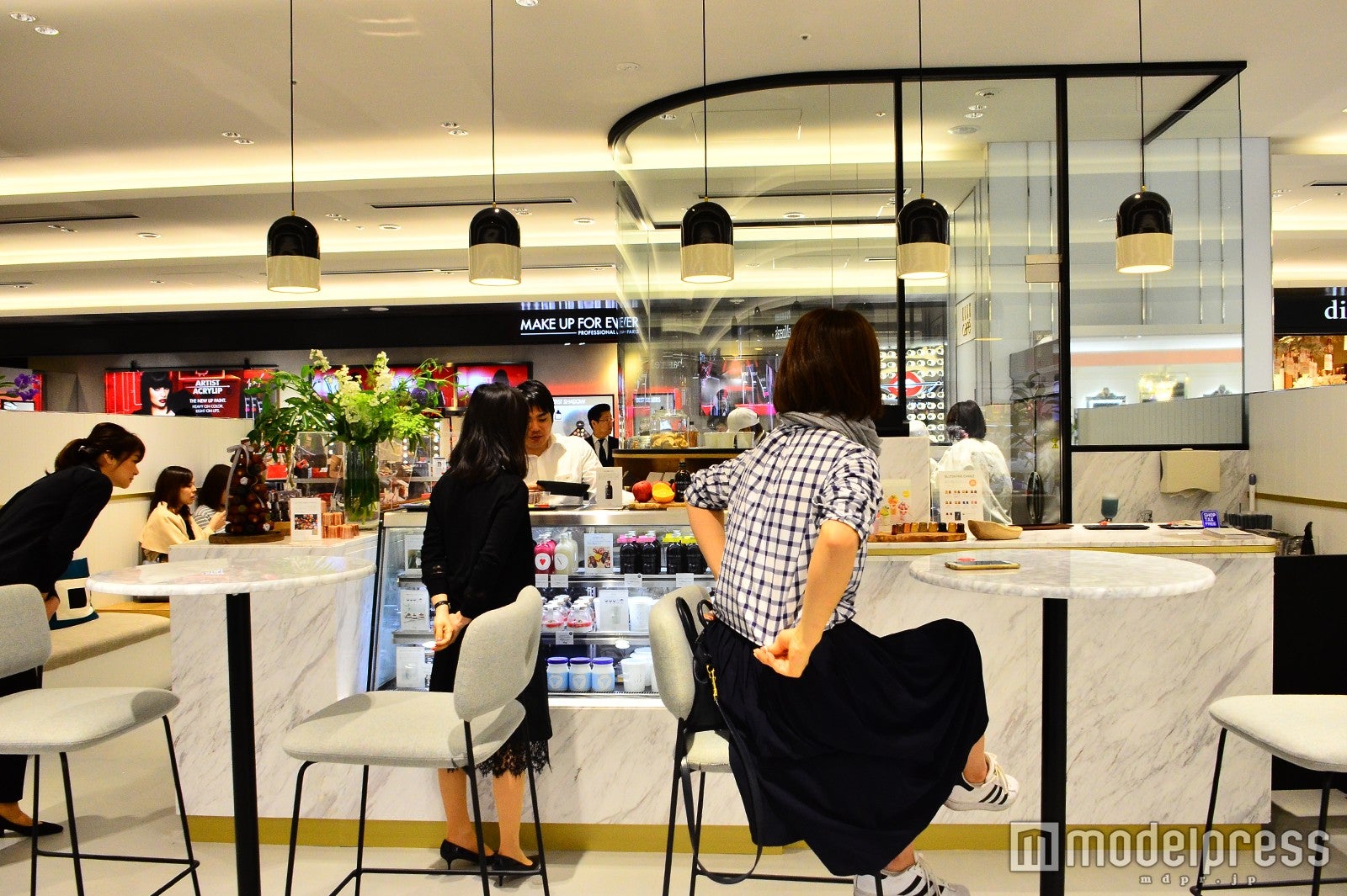 地下1階ビューティフロアには、人気のコスメ、香水のブティックが並び、全店舗の約3分の1がキャビン(個室)を備え、これまでにないワンランク上の接客とおもてなしを実現。同フロア唯一のカフェ業態として、「コールドプレスジュース」や「スムージーボンボン」といったお洒落なドリンクが人気の「エルカフェ」も出店している。