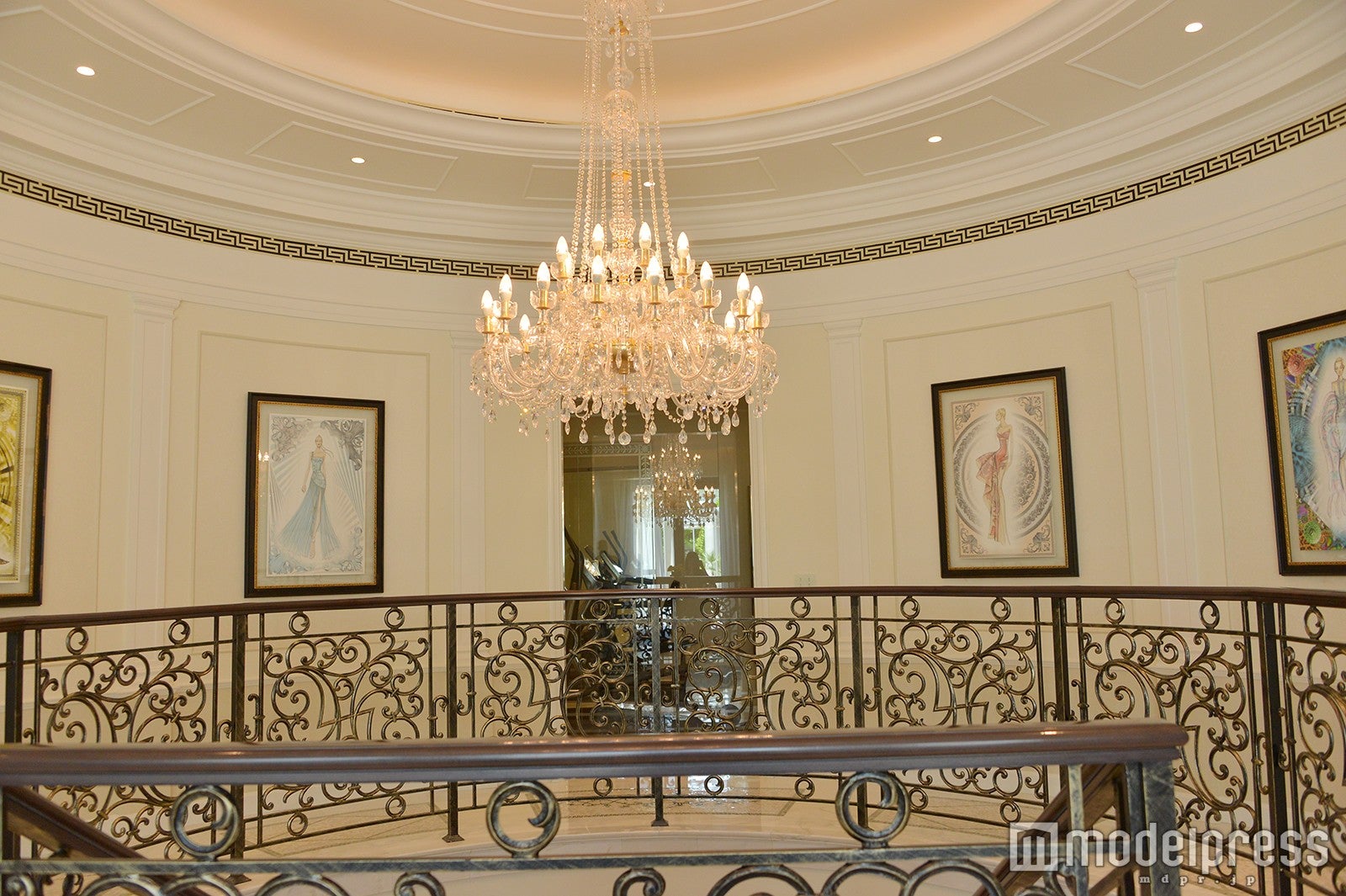 ファッションブランド「ヴェルサーチ」が運営するホテル「パラッツォ ヴェルサーチ ドバイ」は2016年11月にグランドオープンしたばかり。ロビーには、3トンのシャンデリア、ヴェルサーチらしいデザインのソファーがあるなど、一気にラグジュアリーな空間に。このホテルにある家具は、すべてデザイナーのドナテッラ・ヴェルサーチ氏がこのホテルのためだけにデザインしたもの。廊下すべてに飾られているデザイン画もです。