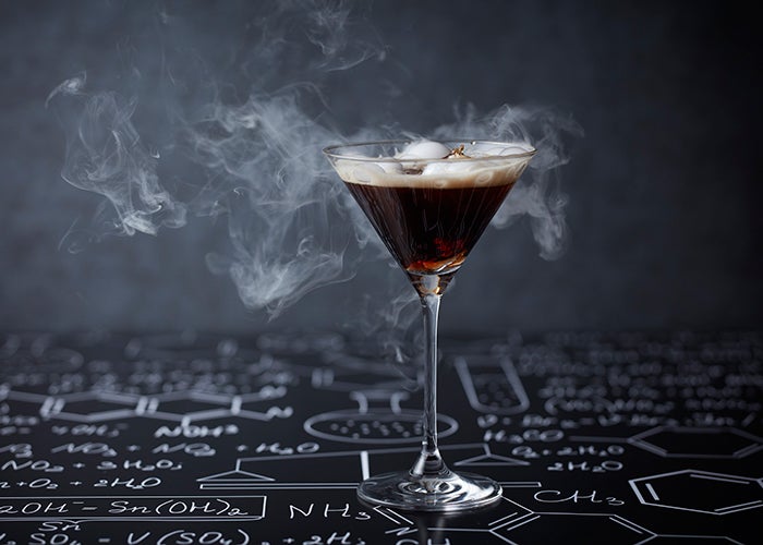インターナショナルな雰囲気の中、種類豊富なカクテルやワインを楽しめる6階「オーク ドア バー」では、昨年も好評だった“科学実験室(ラボラトリー)”がバージョンアップして復活。