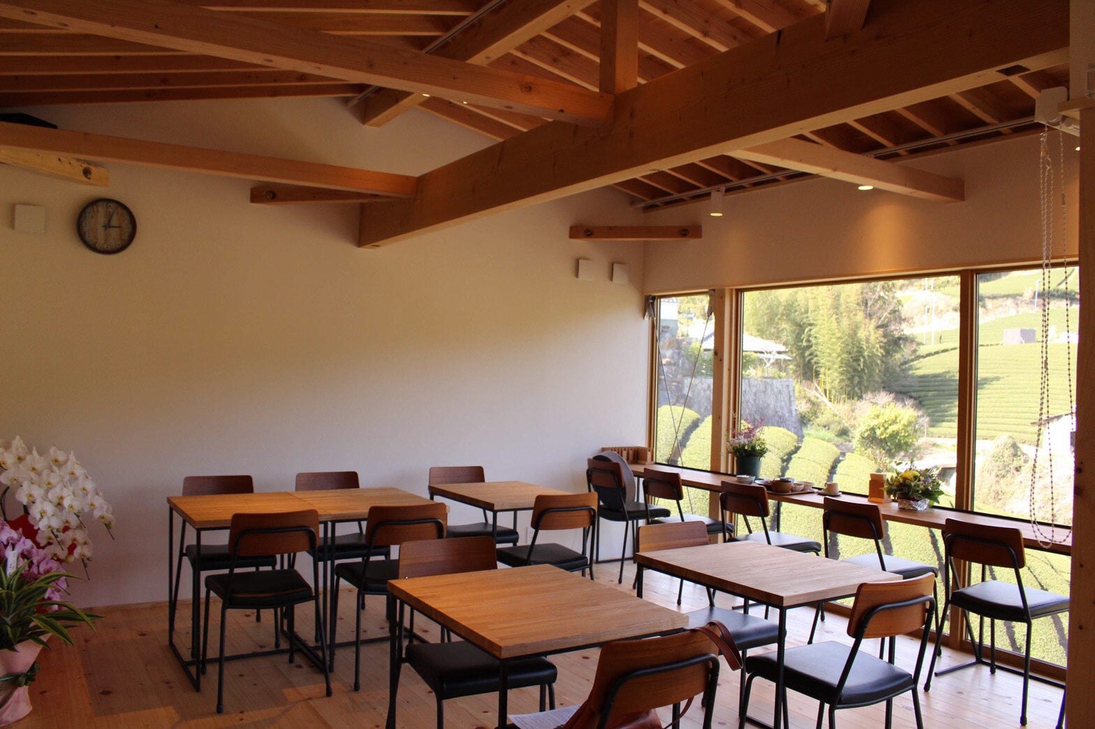 太陽に照らされて青々と輝く茶畑の風景が、木材のぬくもりに溢れた空間で過ごす昼下がりを、より豊かな時間にしてくれます。