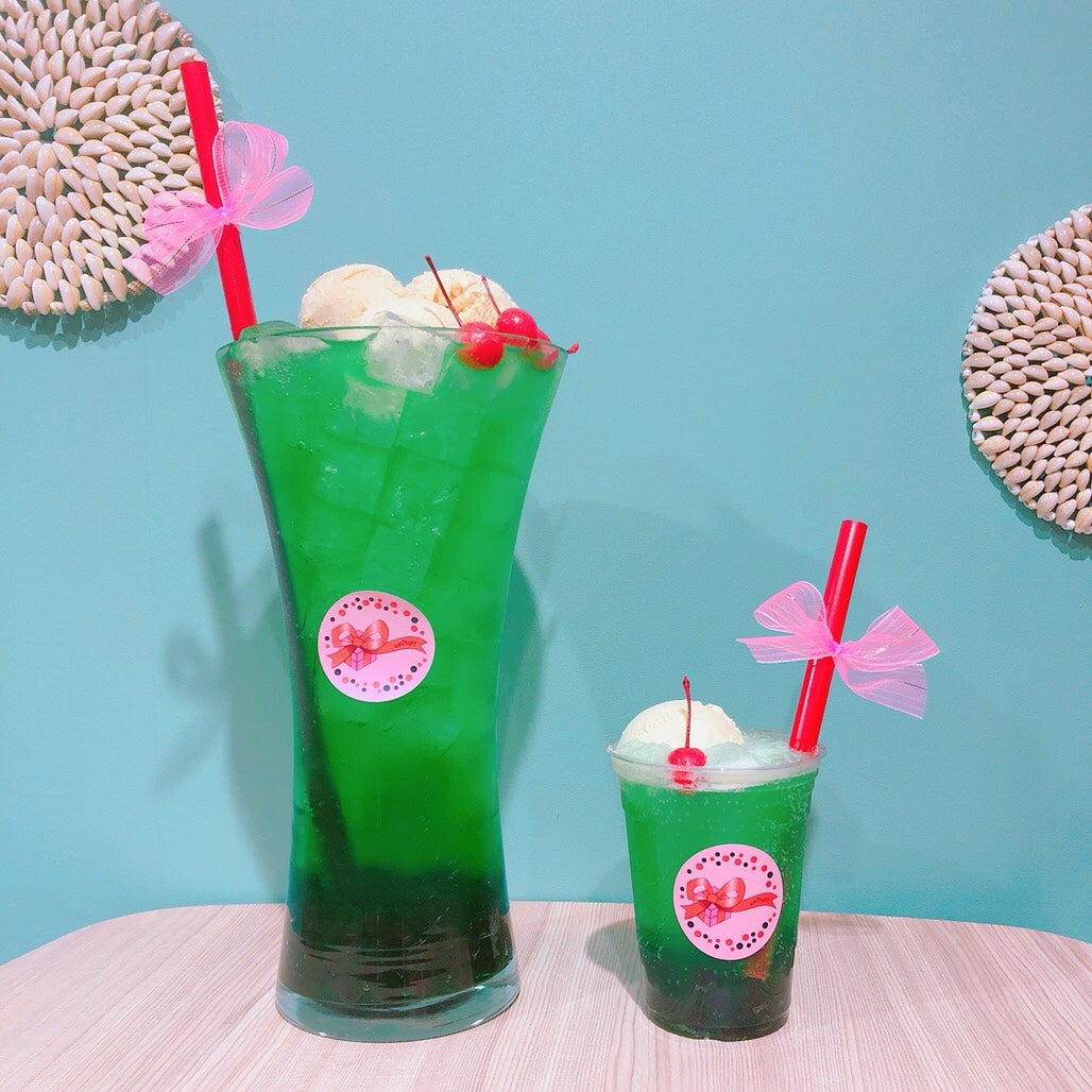 また「シークワーサータピッシュ(500円)」という、ほんのりピンク色の炭酸ドリンクも暖かな気候の沖縄で飲むのにぴったり。シュワッと爽快な飲み口のシークワーサー味の炭酸に、アイスクリームとさくらんぼがのっていて見た目もキュート。タピッシュシリーズは、シークワーサー、オレンジ、メロン、レモン、グレープから好みの味を選べるので、全種類オーダーして並べるとカラフルでお洒落な一枚が撮れそう。