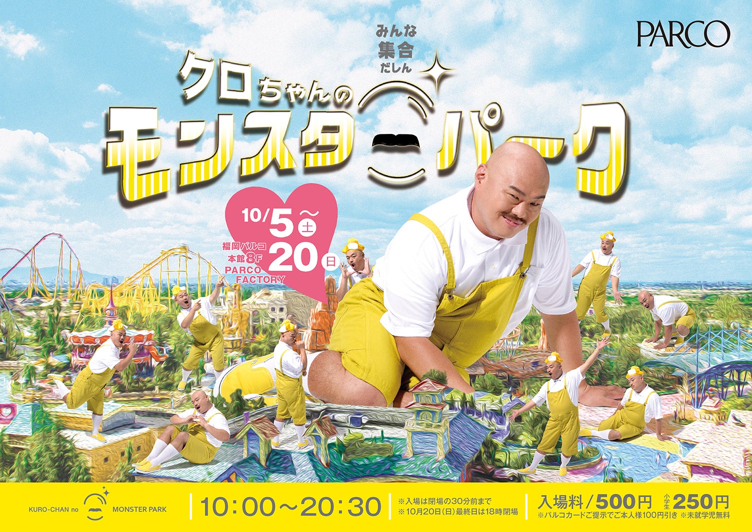 お笑いトリオ・安田大サーカスのクロちゃんの初展覧会「クロちゃんのモンスターパーク」が、2019年10月5日(土)~10月20日(日)まで、福岡PARCOにて開催される。