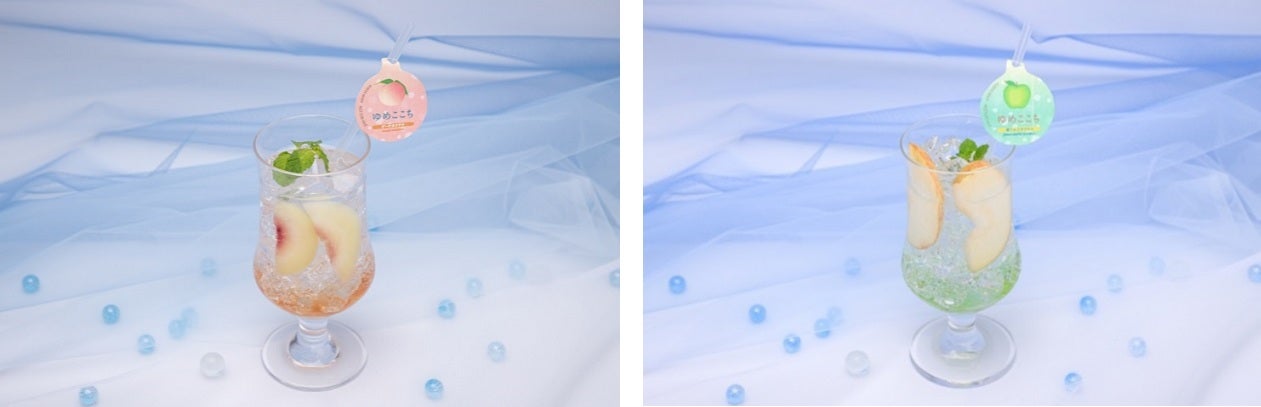 帆高の歓迎会で登場したオリジナルドリンク「ゆめここち」をイメージ。劇中のものはアルコールだが、今回はピーチの優しい甘さと青りんごのさっぱりとした甘さがそれぞれ楽しめるノンアルコールソーダ。