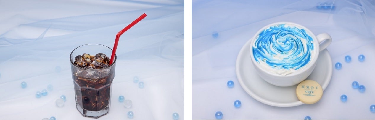 作中に登場した陽菜お手製のチャーハンや、帆高の歓迎会セットをはじめとする“再現メニュー”や、てるてる坊主や猫のアメが可愛らしい“イメージメニュー”、オリジナリティあふれるカフェ限定グッズが登場するほか、映画の場面写を使用した特典など盛りだくさんの内容となっている。