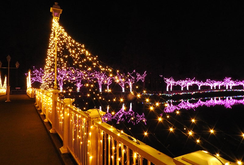 さらに白鳥の池を取り囲む樹々のライトアップ、遊園地内のライトアップと、エリア一帯が日中とは違った煌びやかな光により一変する。