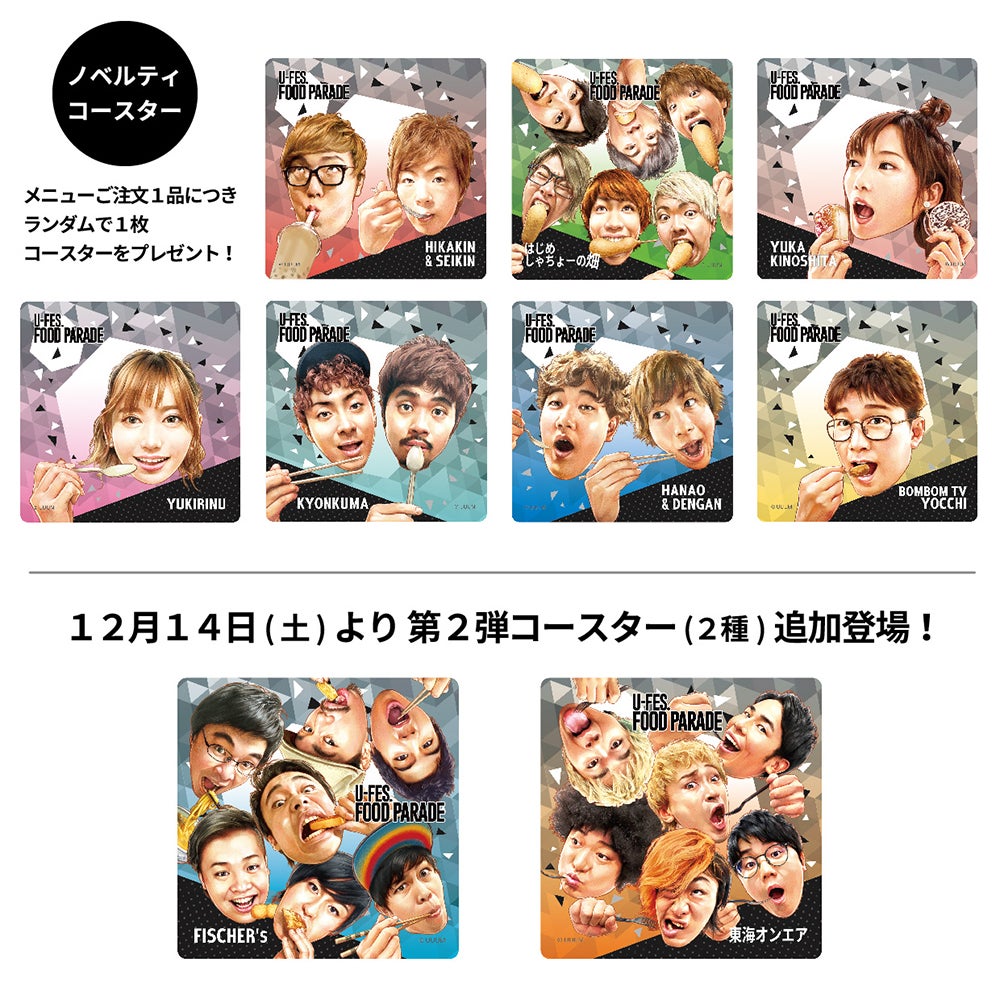 東京・渋谷パルコ6階「TOKYO PARADE goods&cafe」で開催中のコラボレーションカフェ「U-FES. FOOD PARADE」に、2019年12月14日(土)より、Fischer’sや東海オンエアら第二弾クリエイターのカフェメニューが追加される。