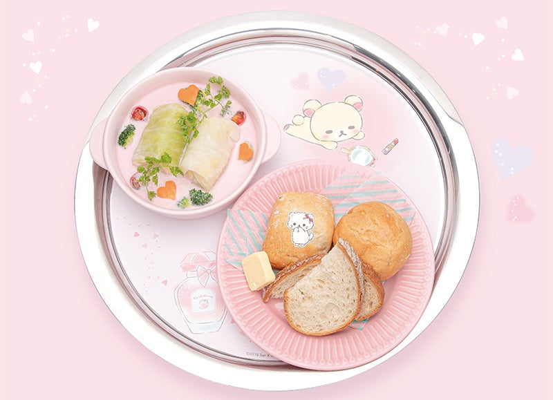 カフェのテーマは『鏡の中のコリラックマ』。鏡の中で出会ったもうひとりのコリラックマと、キラキラコスメや可愛い子ネコたちで溢れる、ほっこり癒されるような世界観を表現したコース料理の数々を提供する。