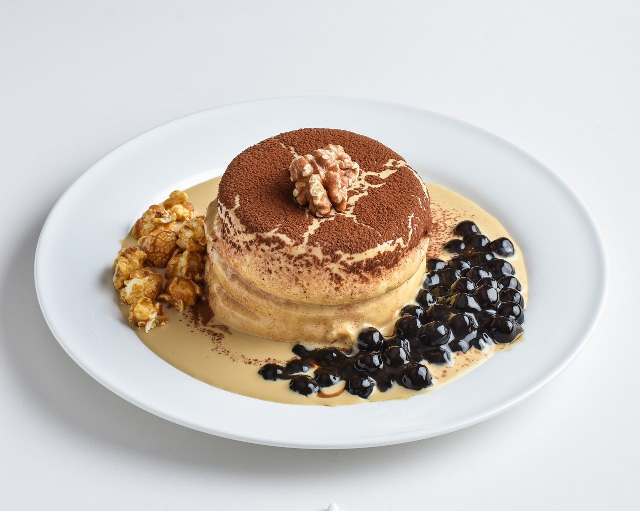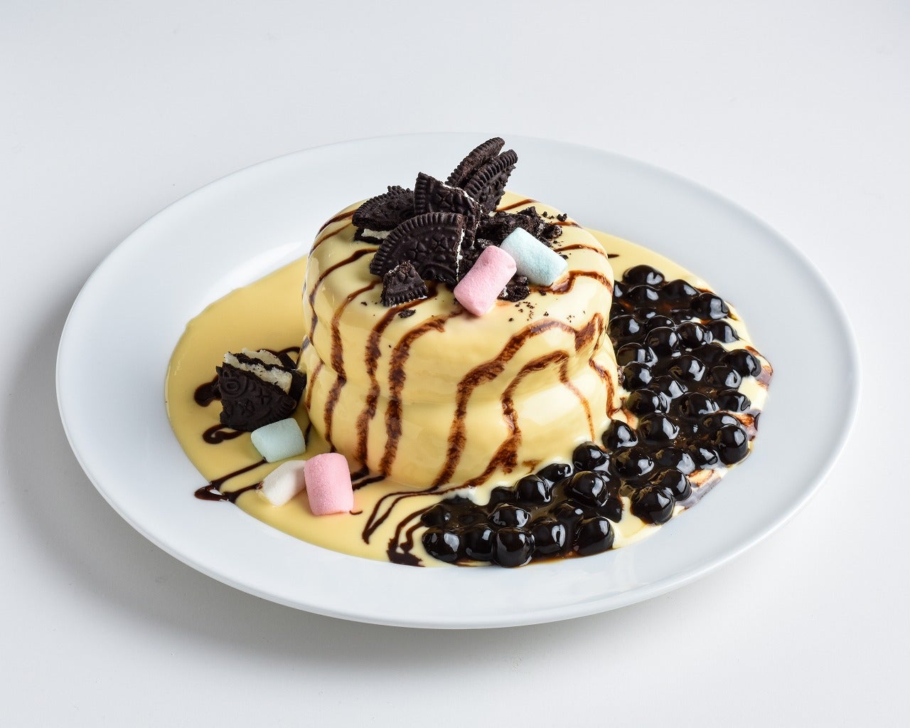 上品な甘さのキャラメルソースが香ばしい「カラメルフレイバー」、アールグレイをオリジナルクリームで仕上げタピオカをたっぷりトッピングした「アールグレイミルクティー」など、さまざまなパンケーキがお目見え。