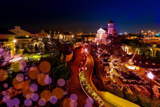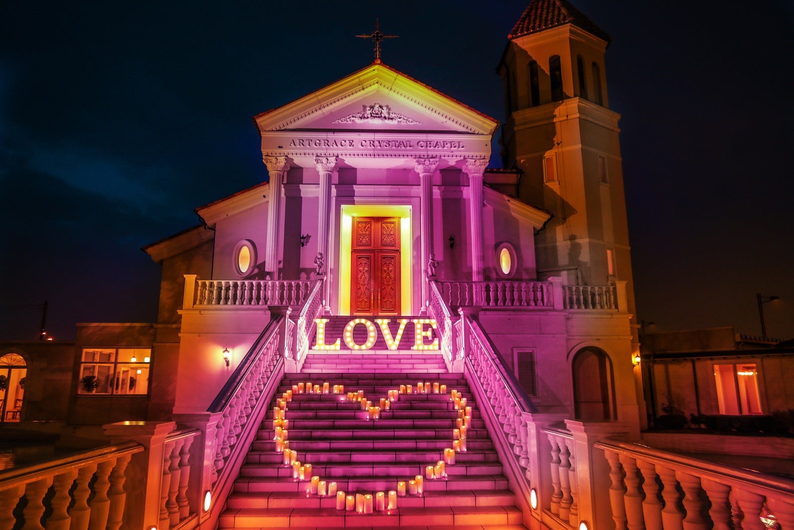 チャペルやガーデンをピンクにライトアップした夜の部も