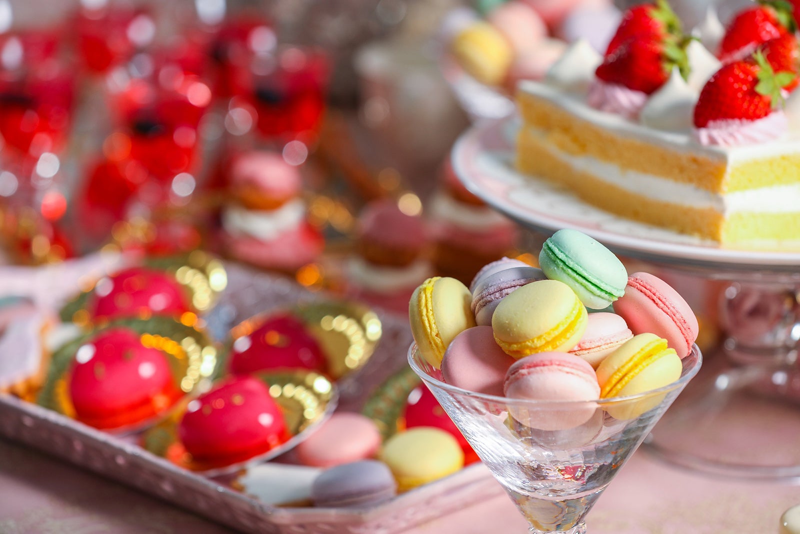 【Dessert Buffet】 マリーアントワネットが愛したベリーマカロン/マリーアントワネット大好物!ストロベリークグロフ/真っ赤なハートのベリームース/花嫁の帽子 ルリジューズ/ホワイトチョコレートのムース ア・ラ・ヴェルサイユ/イチゴのシフォンケーキ/薔薇とベリーのジュレ/ベリーたっぷりタルトレット/イチゴのショートケーキ/ベリーロールケーキ/プティフレーズ(タイムサービス/数量限定)/アイシングクッキー/カラフルロリポップ/ミルクアイスクリーム/イチゴのチョコレートファウンテン