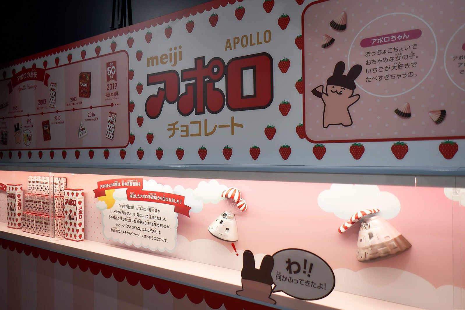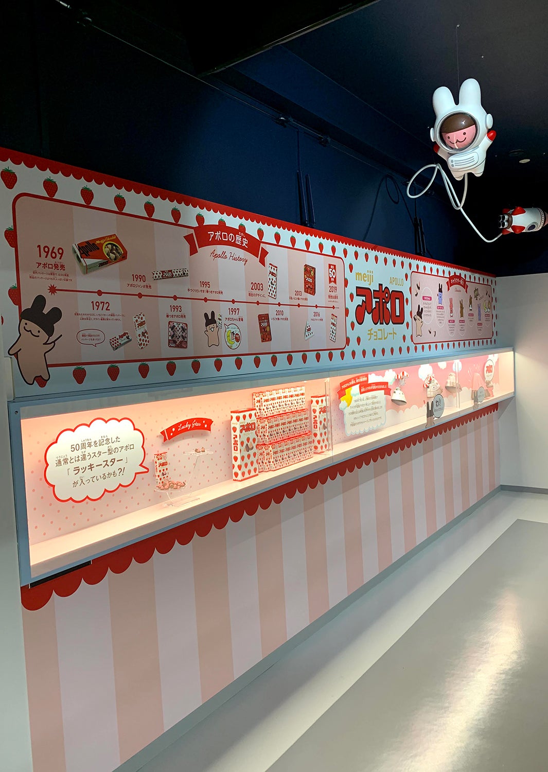 明治初のアポロ見学施設「アポロ見学ライン」は、2019年8月に50周年を迎えたロングセラー「アポロ」の誕生秘話をなぞった工場見学ツアーを通じて、今まで以上に製品への興味や関心を喚起し、「安全・安心なモノづくり」を体験してもらうべく、2020年2月7日に新設された。