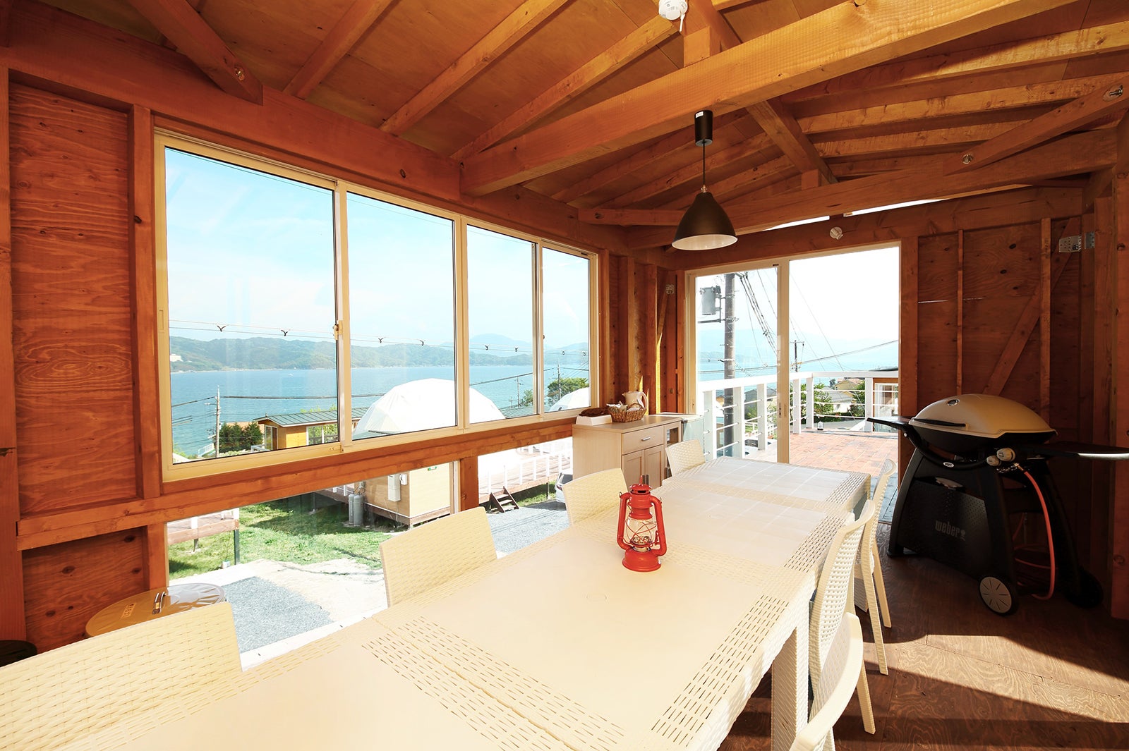 食事の面にもこだわり、各部屋備え付けのガスグリルを利用して、京都和牛をはじめとしたハイクオリティな地元食材をたっぷり味わえる、食材や機材の準備不要の手ぶらBBQを用意。王道のスキレット料理や、秋冬には薪ストーブを使用した薪グランピングを提供し、敷地内にBBQ用の野菜を無料で調達できる「野菜マルシェ」も併設している。