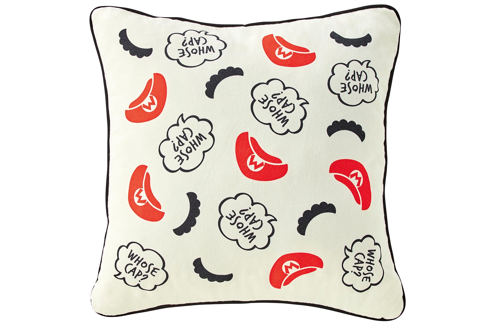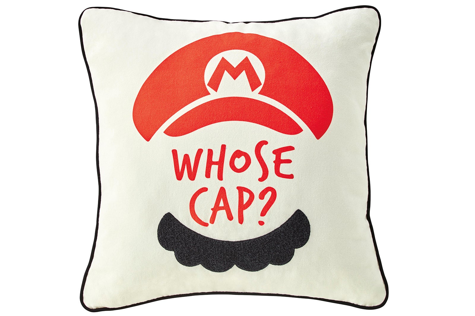 マリオ&ルイージの帽子や、ピーチ姫のクラウン(王冠)など、ゲームでおなじみのアイコンをモチーフにした、Tシャツやポーチセット、2面デザインのクッションなど、人気必至のグッズが充実したワクワクする空間が広がる。