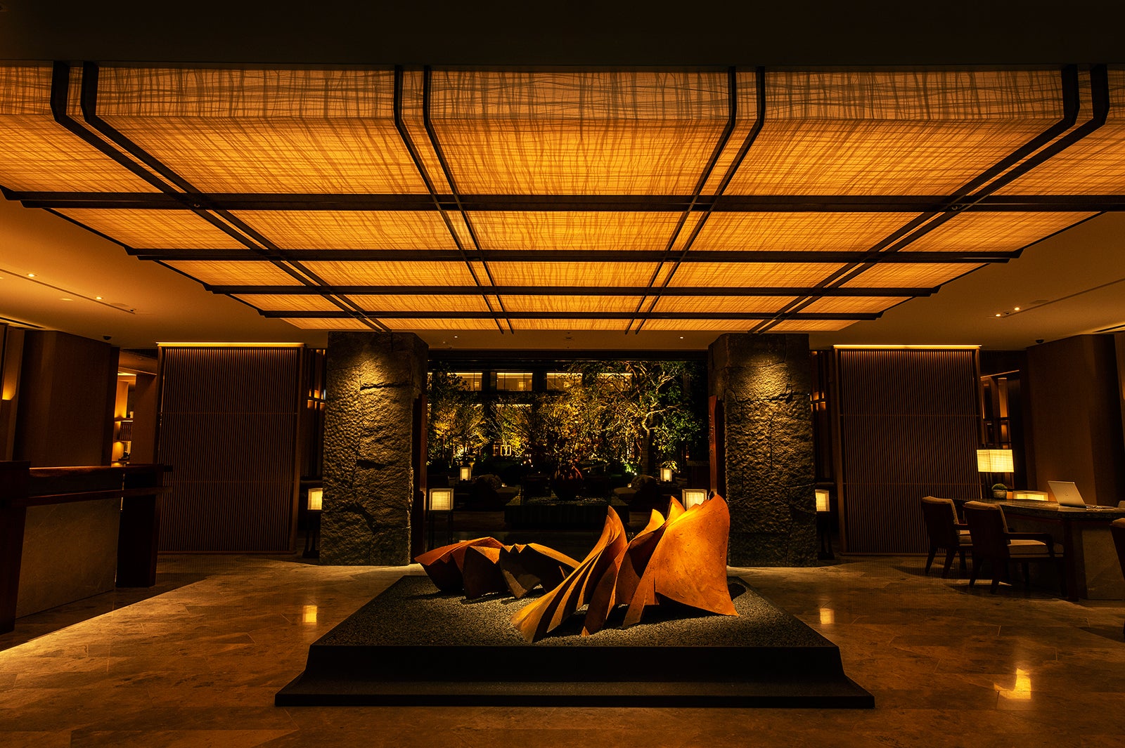 元禄の時代より受け継がれてきた、梶井宮門(かじいみやもん)をエントランスとした重厚感のあるアプローチ、中庭を中心とした景石・灯篭などの数々の遺構が土地に刻まれた記憶を現代に継承し、ホテルのブランドコンセプトである「日本の美しさと -EMBRACING JAPAN’S BEAUTY-」を感じさせてくれる。