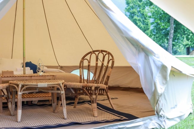 新設される「グランピングフィールド」は都会の喧騒から離れた名栗の豊かな自然のなか、北欧の料理に舌鼓を打ちながら、手ぶらでキャンプを楽しめるグランピングエリア。