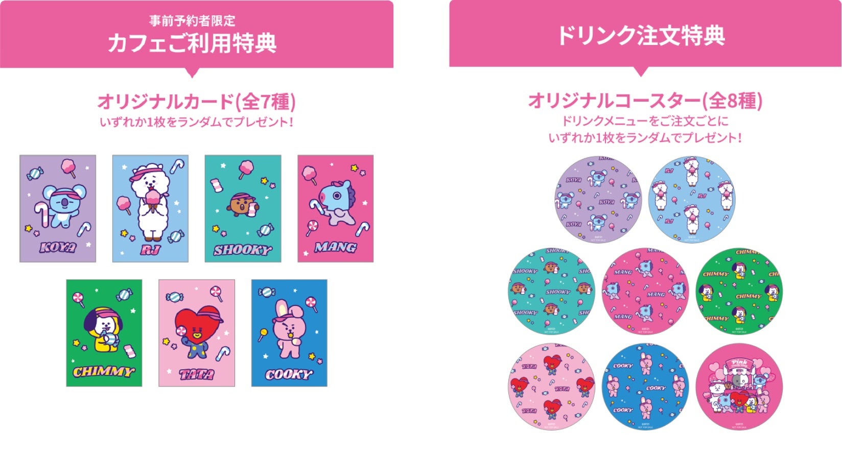 「BT21カフェ」は、世界中で人気のキャラクター「BT21」のキャラクターをモチーフに工夫を凝らしたメニューやオリジナルグッズを展開し、開催される度に好評を博している。