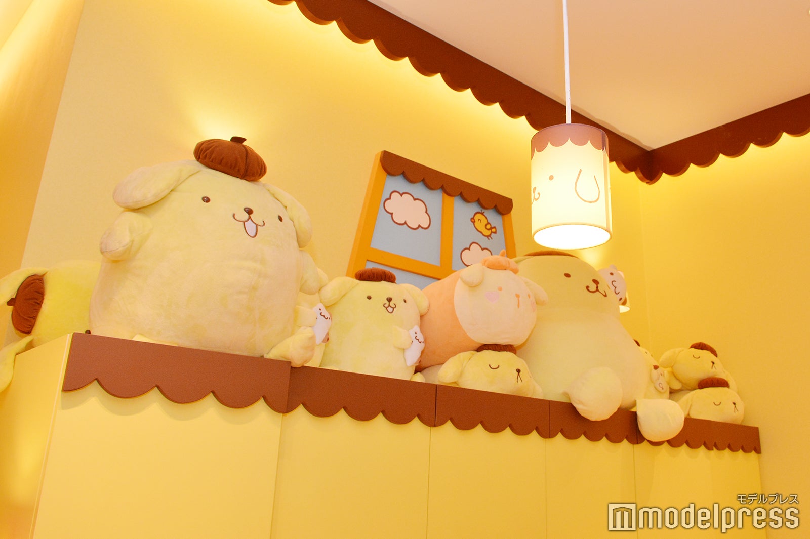 内装もメニューも可愛さ満点のこちらのカフェ。記念撮影の際は、ぜひお店で用意しているフォトプロップスを使って、より可愛らしく記念の1枚をカメラにおさめてみて。入口付近にポムポムプリンをモチーフにしたグッズの物販スペースもあるので、食事がてらこちらも要チェック。