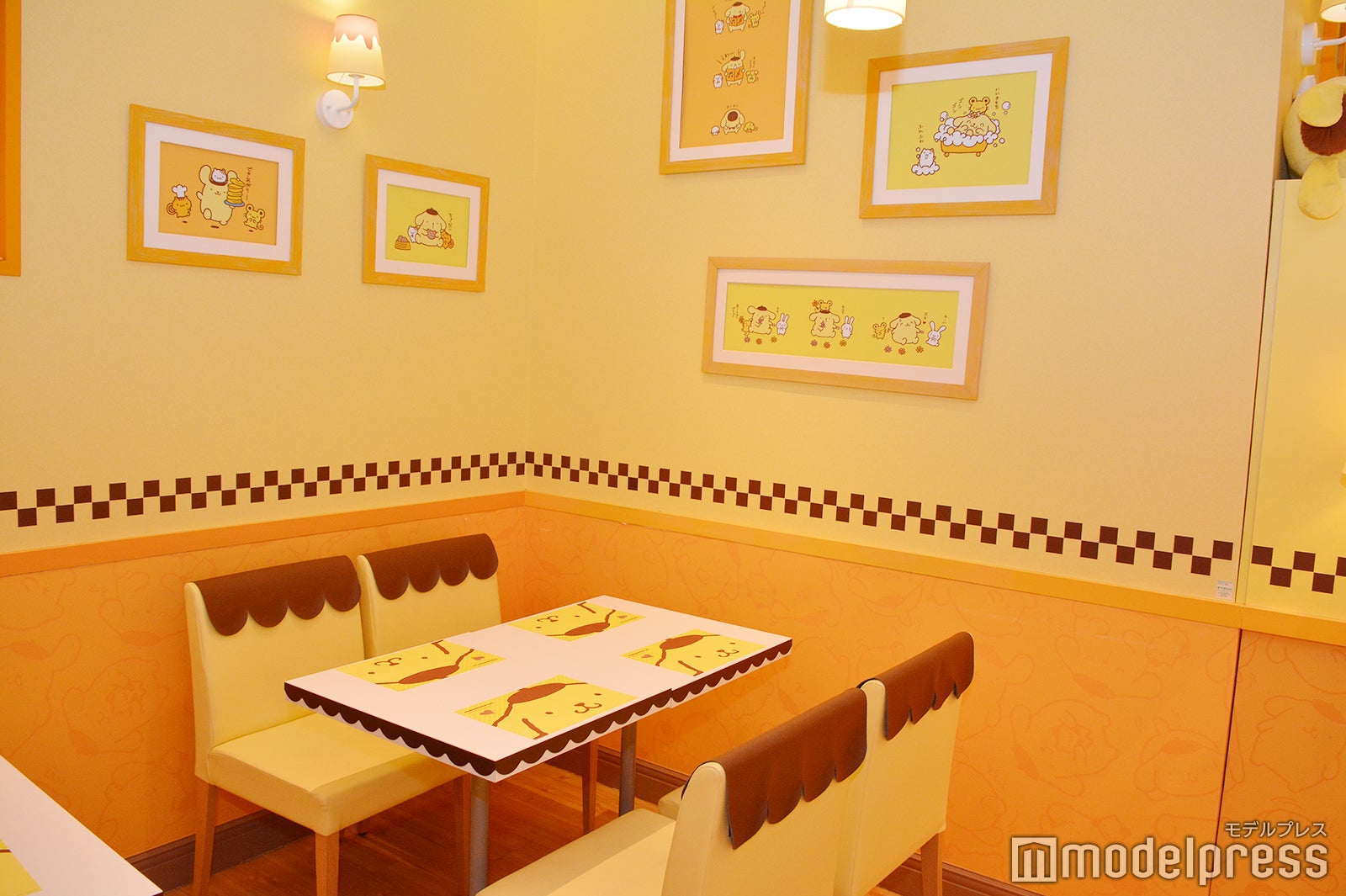 壁紙、ランチョンマット、椅子、ペンダントライトに至るまでポムポムプリンのデザインが採用されており、まさにお店全体がフォトスポットのよう。空間全体に乙女心をくすぐる“可愛い”がぎゅっと詰め込まれています。