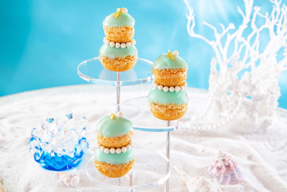 ヒルトン東京で“マーメイド”スイーツビュッフェ、貝殻ケーキや人魚の涙のシュー菓子など約30種