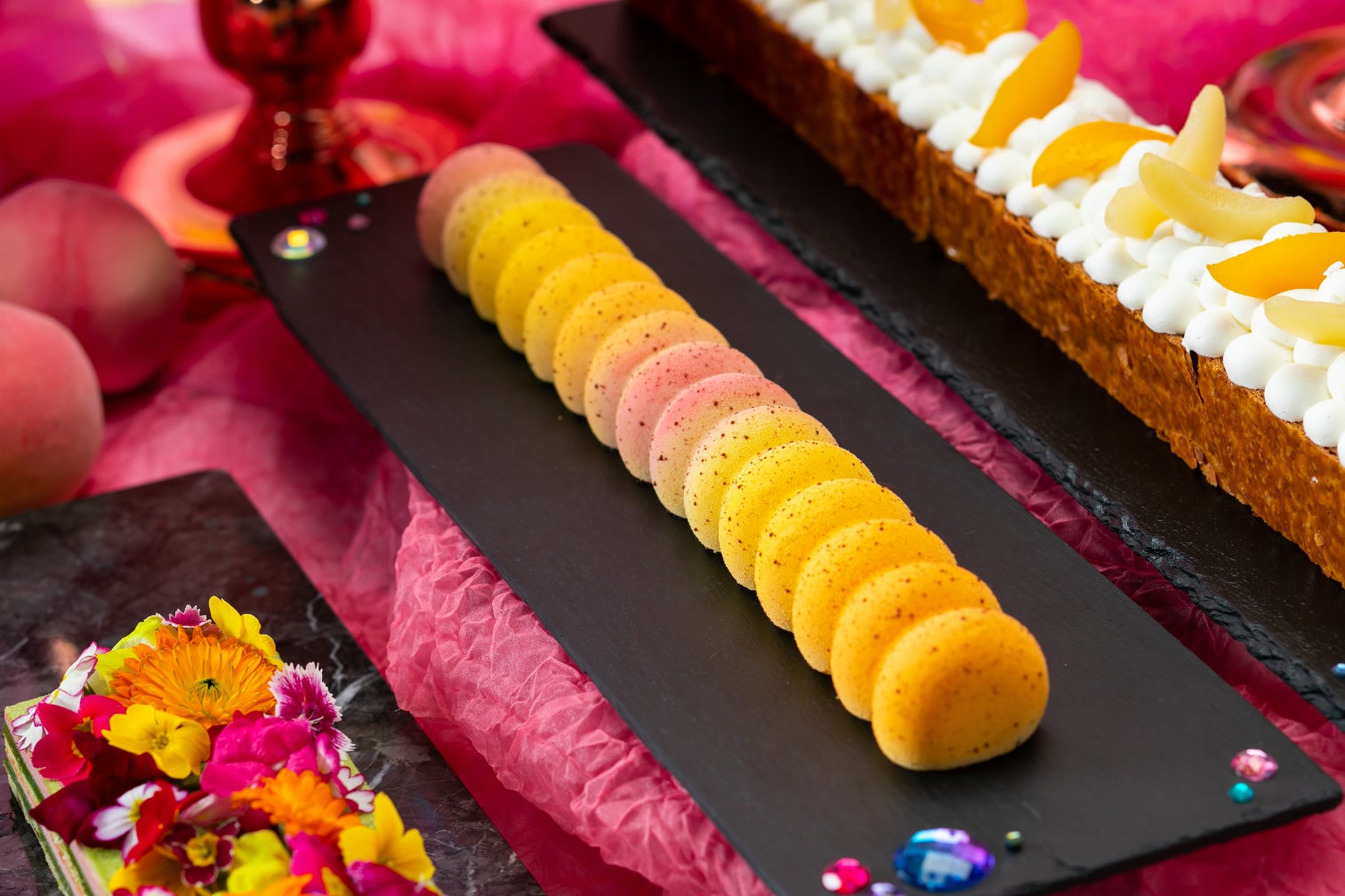 (ピーチシュケット、ピーチとココナッツのロングミルフィーユ、ピーチとオレンジショートケーキ、ピーチクラフティ、スライスピーチケーキ、カラフルマカロン、ピーチプリズムカップケーキ、アーティストパレット(ラズベリームース、ピーチマーマレード、ピーカンプラリネ)、カラフルハートタルト(ピーチ、バニラ)、マーブル・マーブル・ムース (ピーチコンポート、ブルベリームース)、サンシャイン・イン・ザ・ダーク (ピーチムース、バニラキャラメルクリーム)、デイジーセレブレーション (アーモンド、ローズムース、ピーチコンポート)、ハレの庭園(抹茶ガナッシュ、桜ムース)、カラフル・キス (桃のサクサククリスピー)、スパイシー・キャタピラー (ピーチムース、アプリコットコンポート)、ピーチマシュマロ、かき氷・イン・ブルースカイ、カラフル・ハグ (マーブルチョコレート、ドライフルーツ、ナッツ)、ピスタチオとピーチゼリーのパンナコッタ