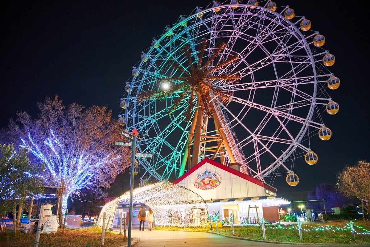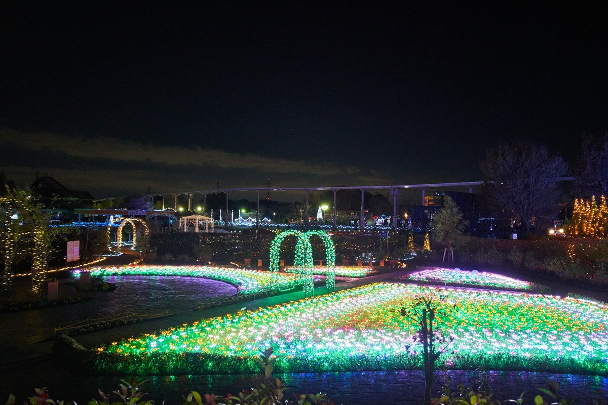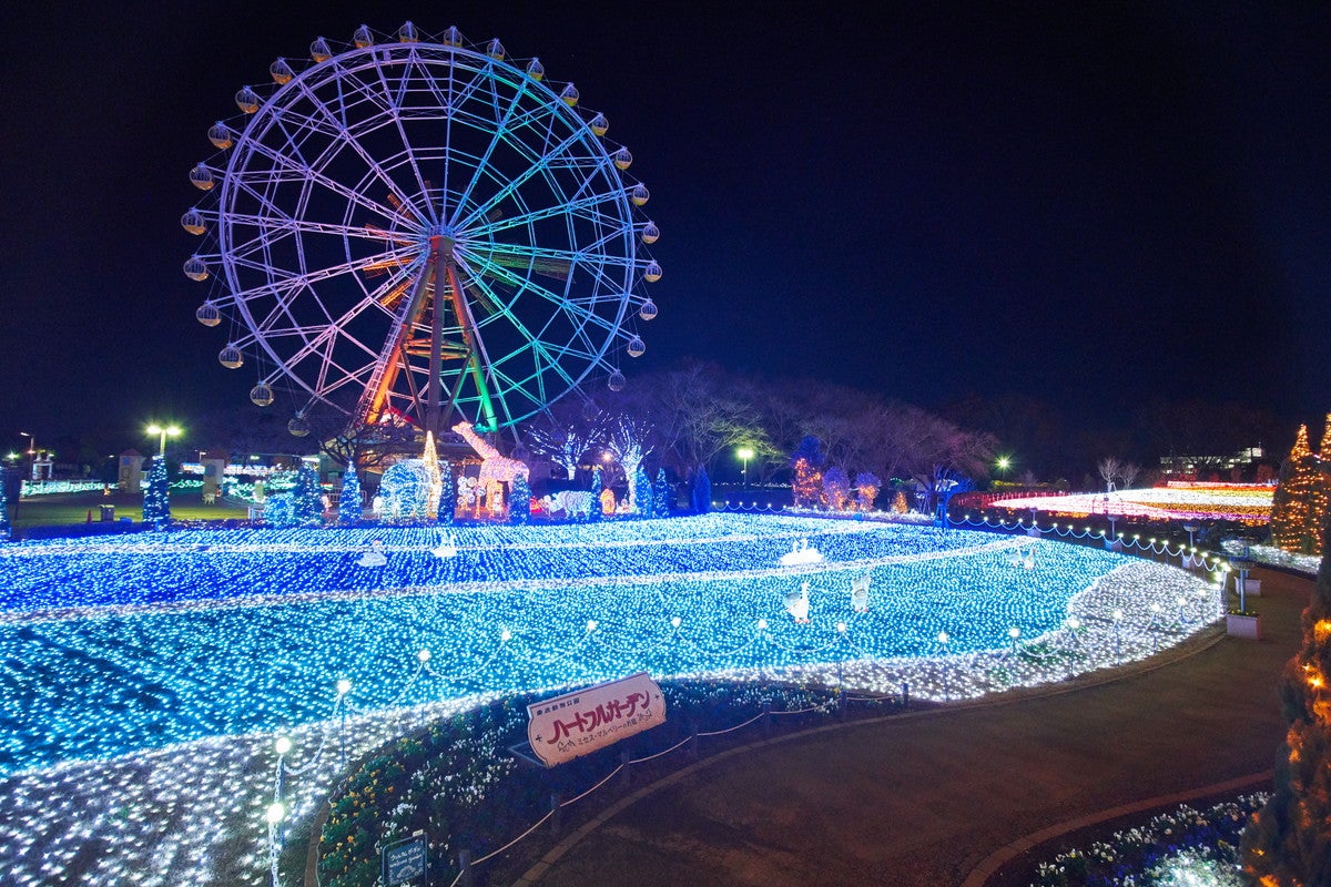 「ウインターイルミネーション」の見どころは、大型LEDビジョンでのイルミネーションショー、ハートフルガーデン、ランタンイルミネーション、桜イルミネーション、遊園地イルミネーションの5つ。