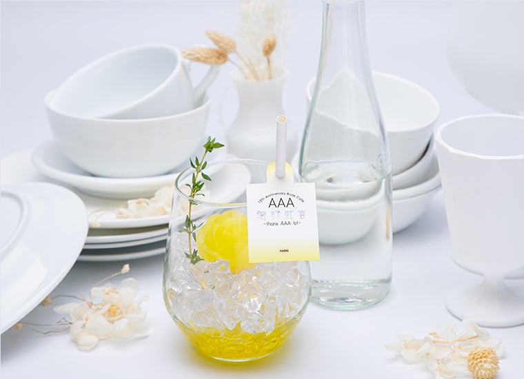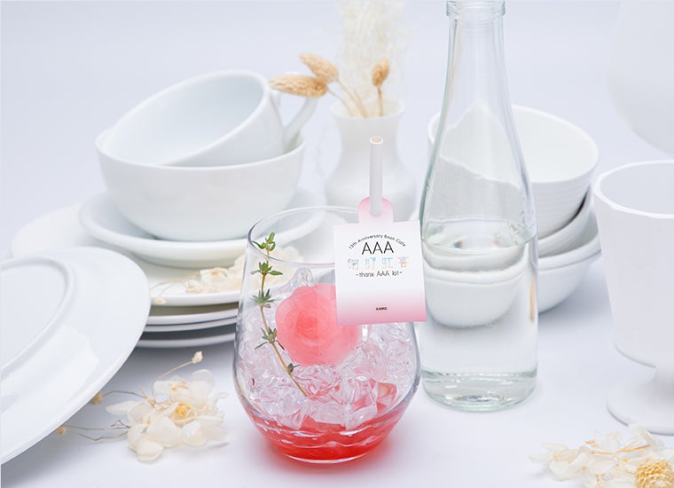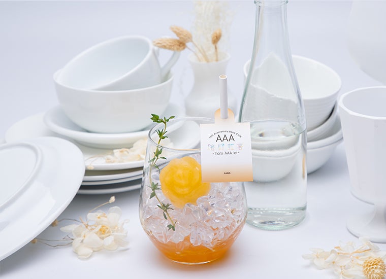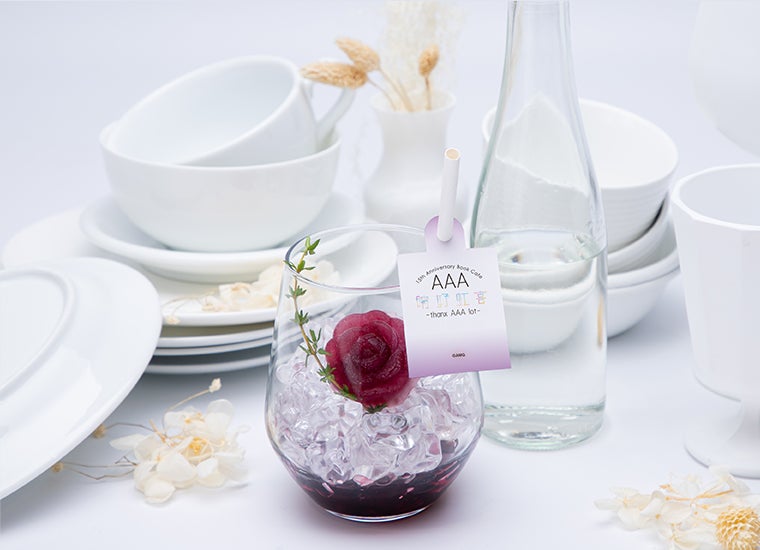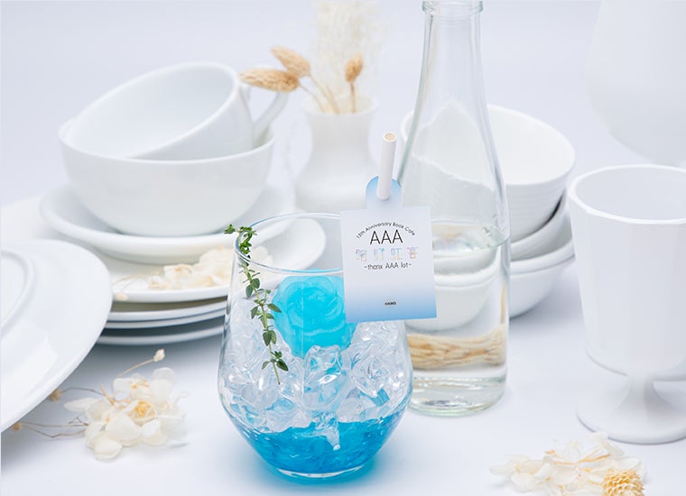 AAA15周年記念写真集『AAA 15th Anniversary Book 晴好虹喜-thanx AAA lot-』の一節を再現した同カフェでは、落ち着いた優雅な雰囲気の店内に囲まれながら、写真集から連想される様々なメニューやグッズを提供。事前予約者限定カフェ利用特典のポストカード(全5種/ランダム)と、ドリンク注文特典のオリジナル紙コースター(全5種/ランダム)がそれぞれ1枚プレゼントされる。