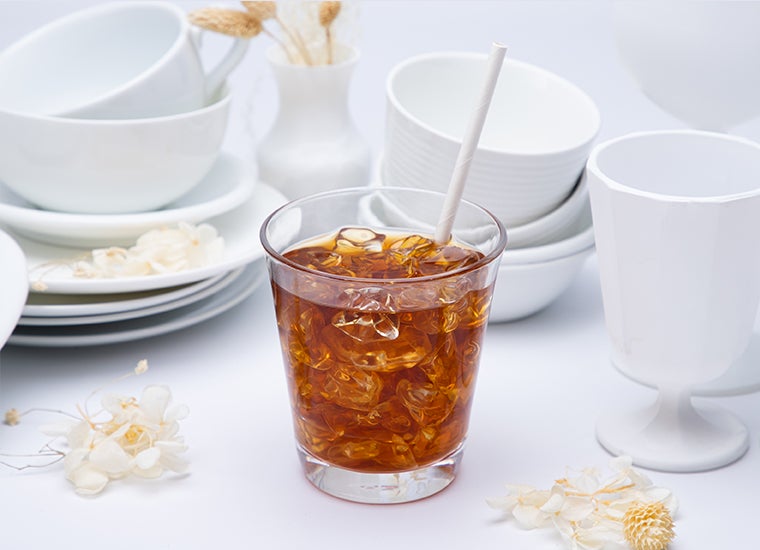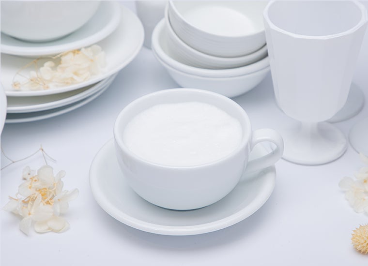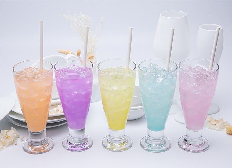 フードメニューでは、写真集に登場する撮影シーンをコンセプトとして、白の中のカラーリングを再現。クリームチーズの濃厚パスタや、ホワイトシチューがかかったオムライス、ふんわりとした白いバンズのハンバーガーなど、白をベースに、メンバーカラーが虹のように差し込むイメージを表現したメニューが登場。