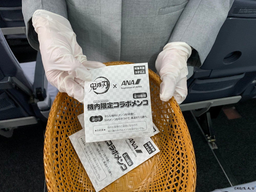 また、機内で子どもの搭乗者向けに配布されるANAオリジナルおもちゃのラインナップに、限定コラボメンコ(1セット2枚入り、全18種類)が登場。