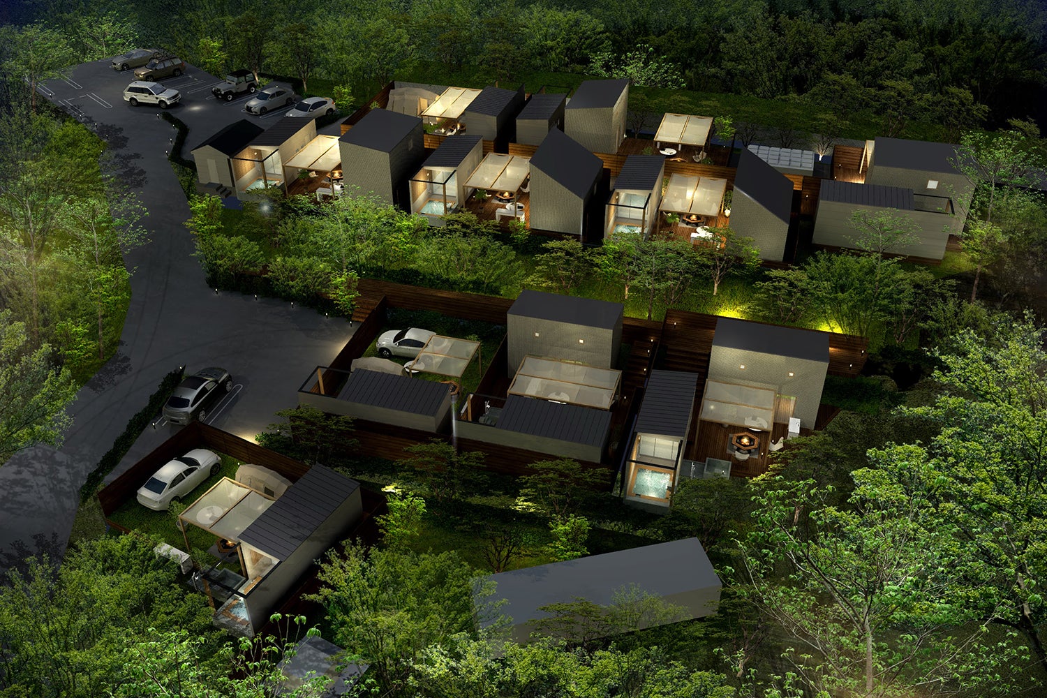 全10棟全てが1棟貸切110平米以上で、専用BBQスペース、源泉かけ流しの温泉露天風呂付きのラグジュアリーなスイートヴィラ仕様。