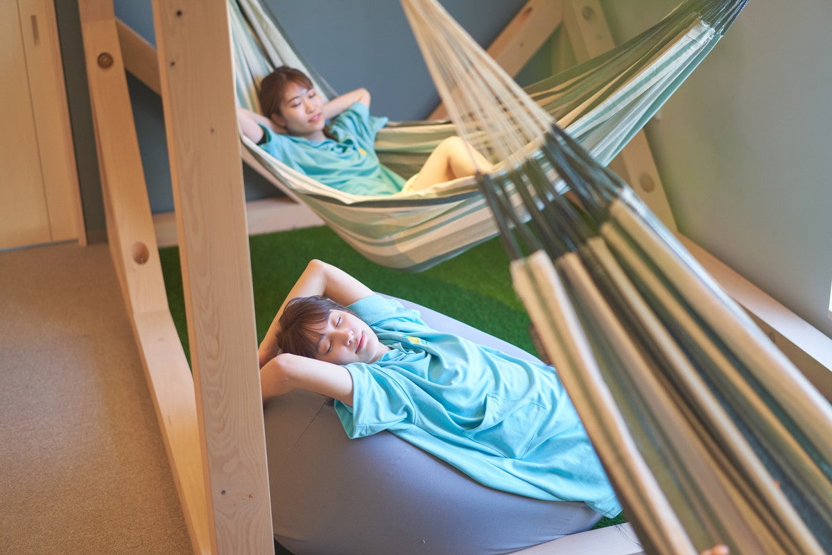 風呂上りや食後にくつろげるラウンジでは、暖炉の前でうとうとしたり、コワーキングスペースで作業をしたり、隠れ家的なツリーハウスでコミックを読みふけったりと、思い思いの過ごし方ができる。(女子旅プレス/modelpress編集部)